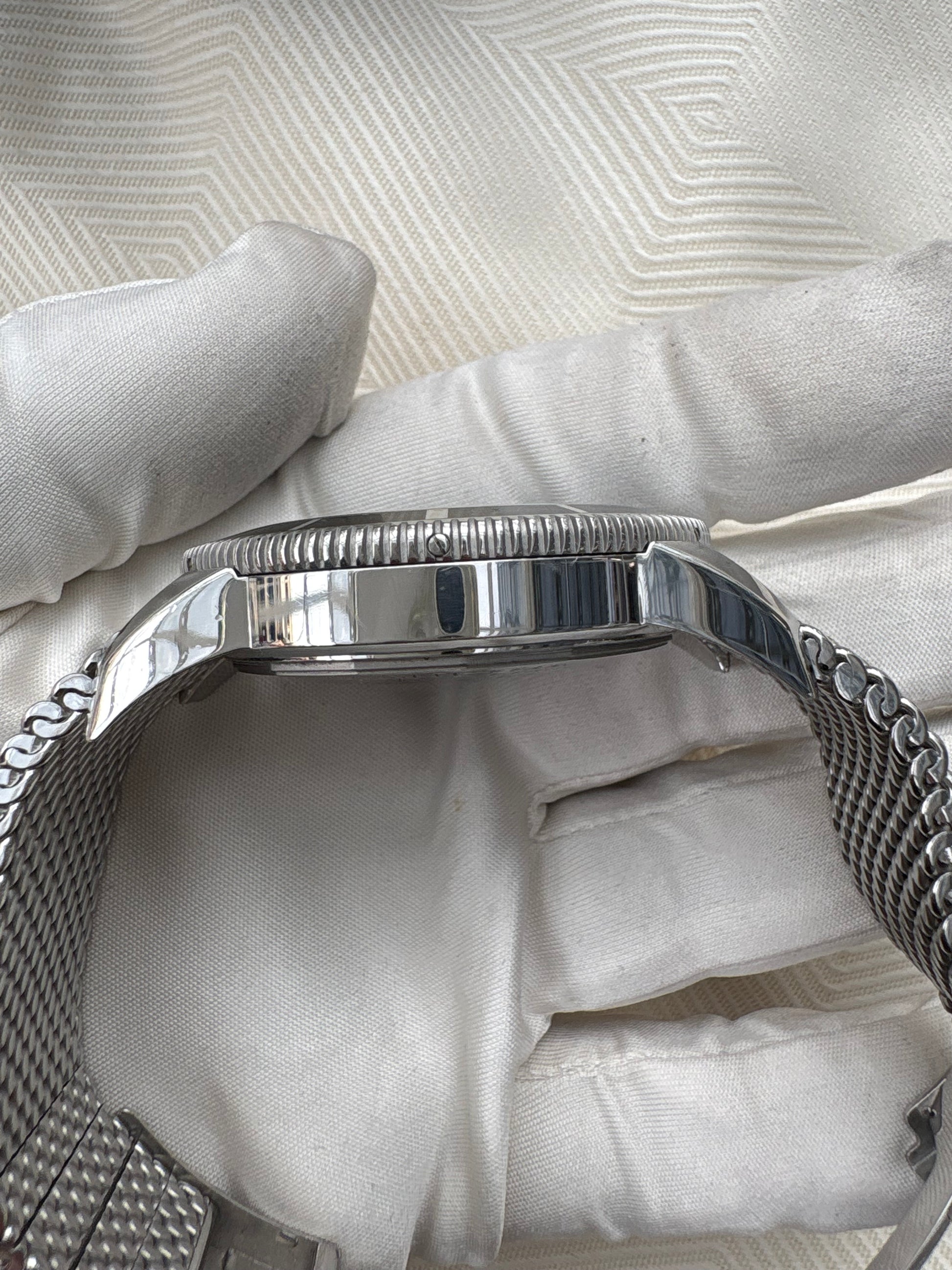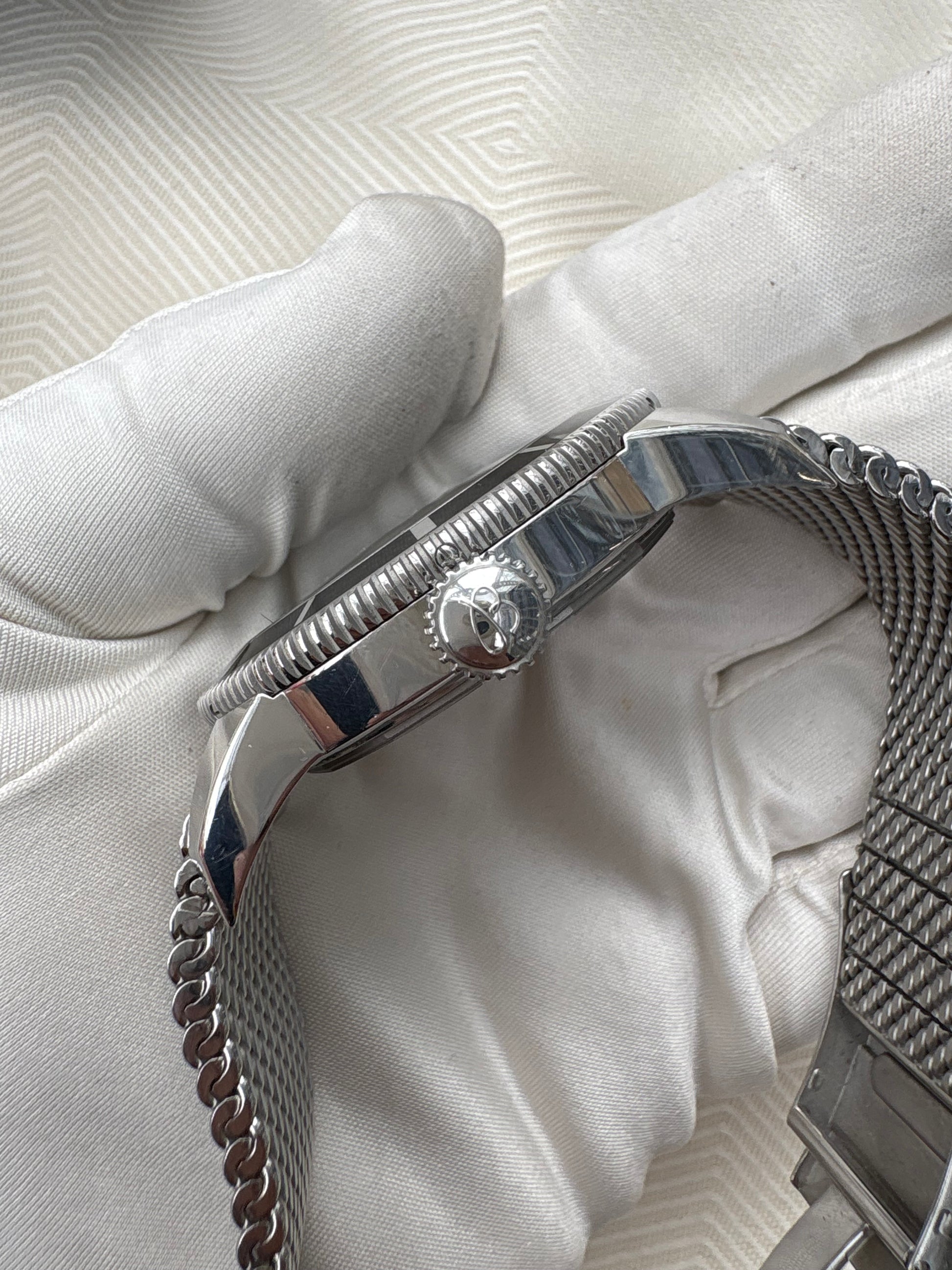 AUTOMATIC CHRONOMETER MOVEMENT WITH ITS ORIGINAL MESH BRACELET AND CLASP.
