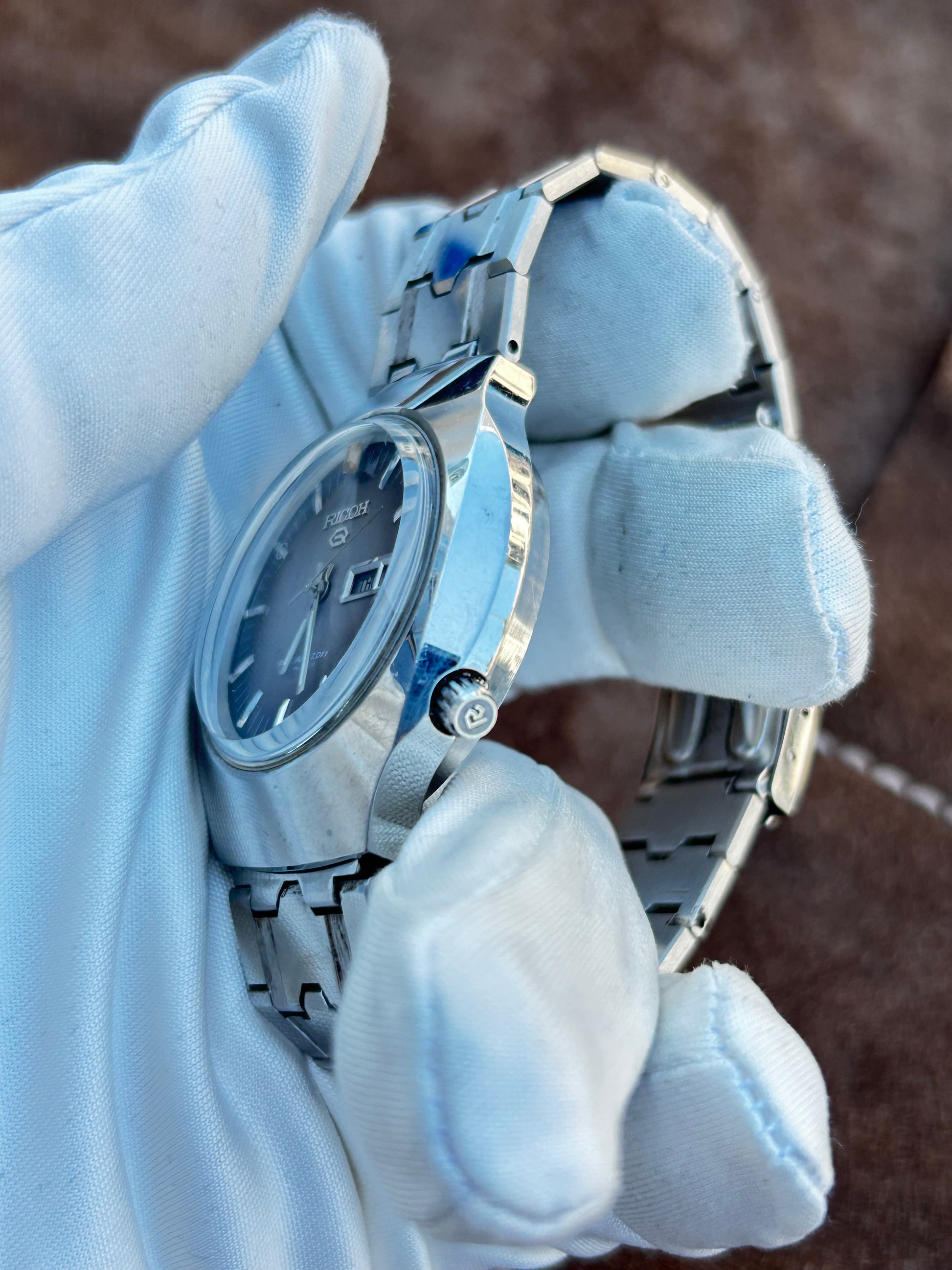 THIS QUARTZ RICOH IS ALSO FROM 1970'S. THE UNUSUAL THING IS THE CASE IS A MECHANICAL WATCH CASE INDEED. IT HAS A BEAUTIFUL DIAL AND THE WATCH HAS ITS ORIGINAL BRACELET.